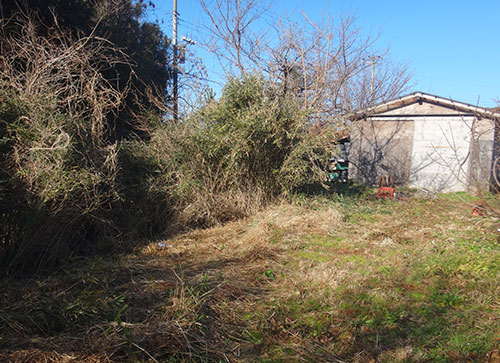 まずは、ガレージを作る場所をおおざっぱに決め、周囲の草刈りや整地などをします。