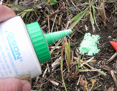 柱(基礎杭)の位置には、チョーク粉などで簡単にマークしておくといいでしょう。