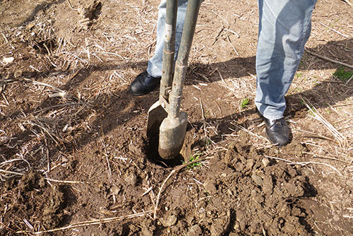 ダブルスコップ(準備編参照)で、基礎杭を埋める部分を掘ります。