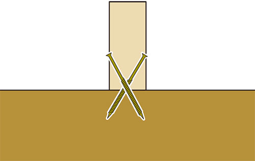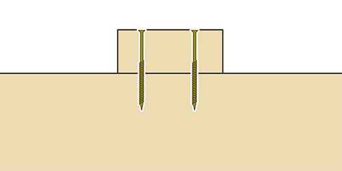 桟木は2×4材を平使い(横向きに置く)として、75ミリのコーススレッド2本で留めます。