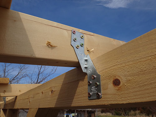 さらに、垂木と桁の接合部には「あおり止め」をビス留め。これで台風がきても安心です!