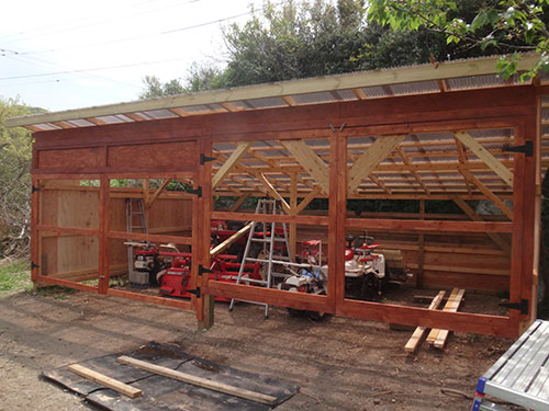 ガレージなので屋根さえ張ってしまえば、最低限の雨よけはできますが、